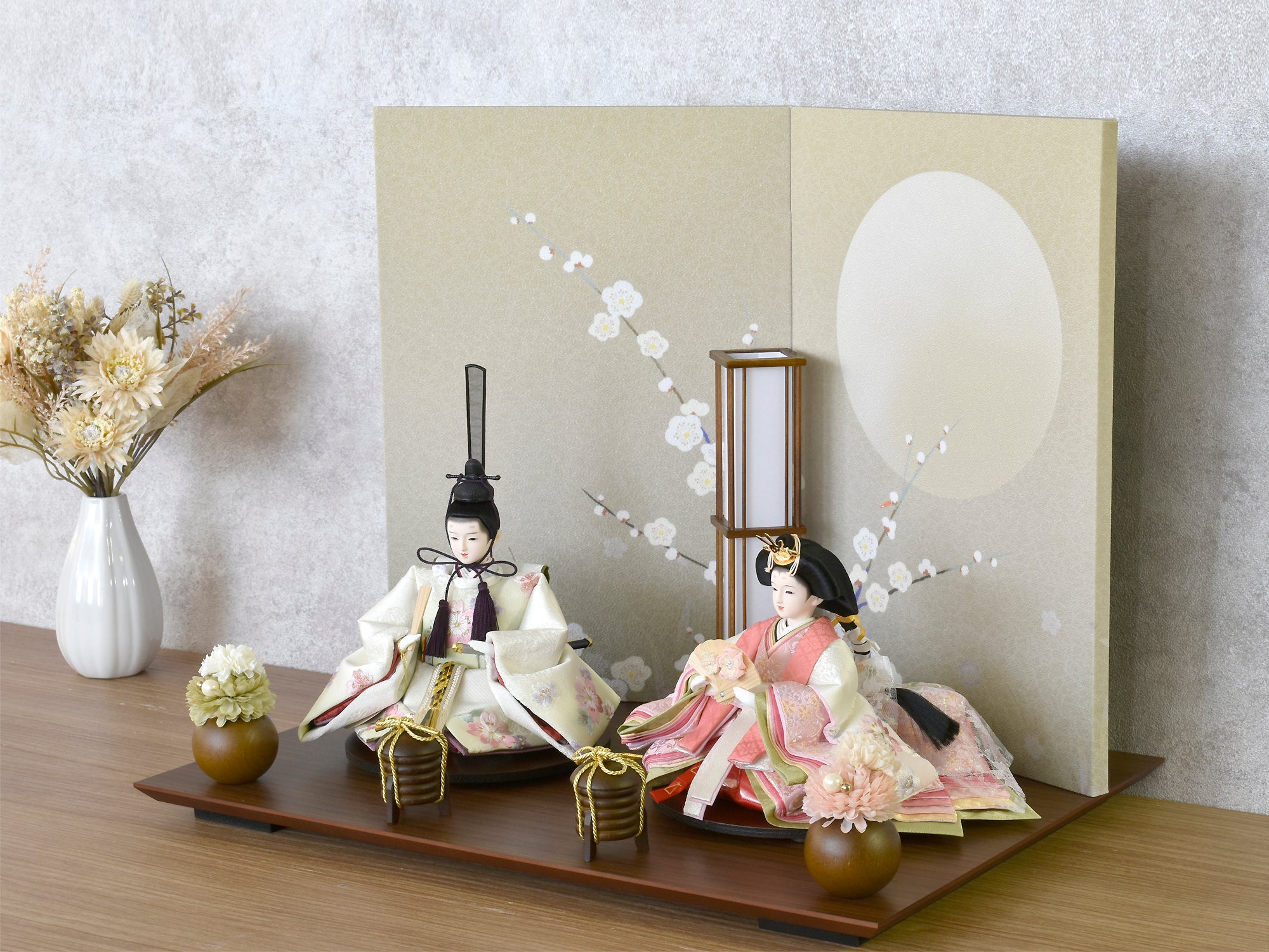 人形をより美しく、そして敬意をもって飾るために欠かせないのが周辺のお道具類。なかでも屏風や飾り台は単なる背景ではなく、主役を引き立て、空間全体に調和と格式をもたらす大切な存在です。