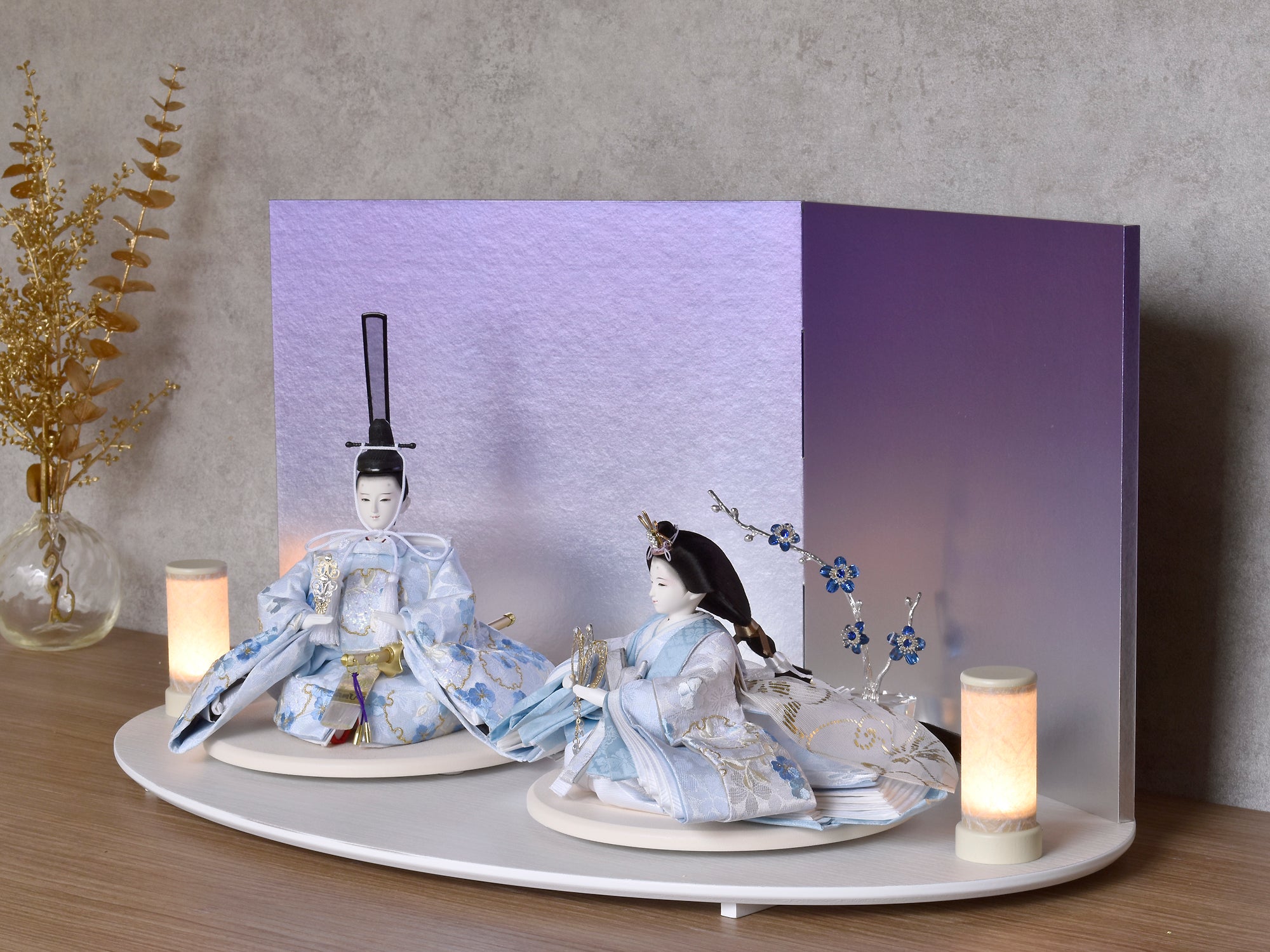 人形をより美しく、そして敬意をもって飾るために欠かせないのが周辺のお道具類。なかでも屏風や飾り台は単なる背景ではなく、主役を引き立て、空間全体に調和と格式をもたらす大切な存在です。