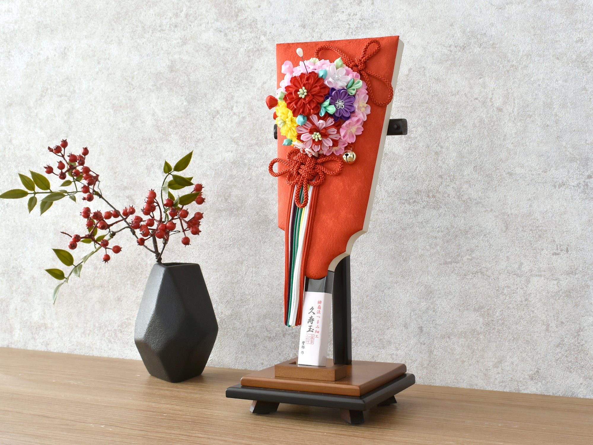 | 本体仕様 | ■羽子板:木製(桐) くす玉:正絹羽二重 ■飾り台:木製組立式 ■ケース:前扉開閉式木製ガラスケース |