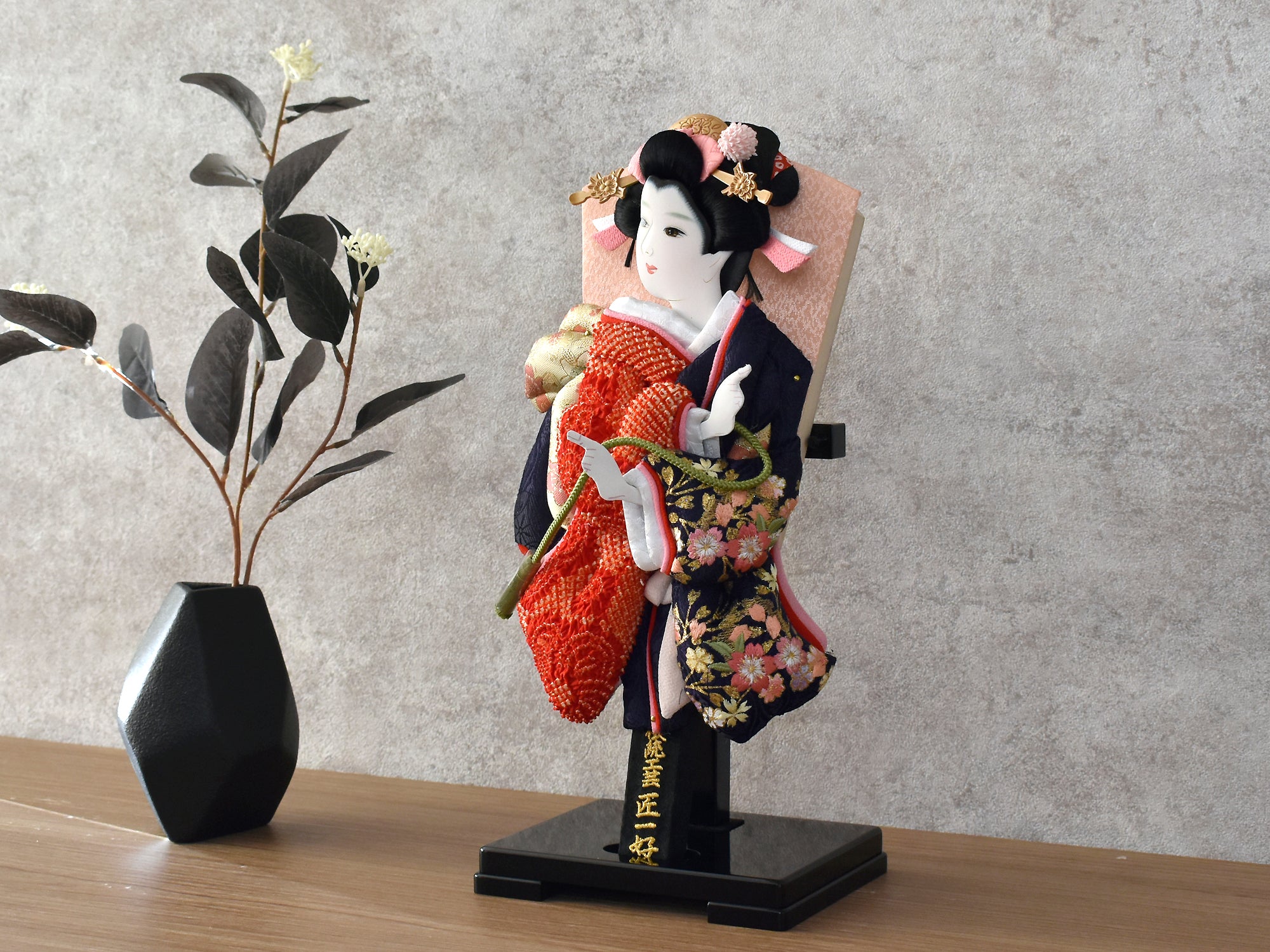 | 本体仕様 | ■衣装 :正絹鹿の子絞り 金彩加工金襴 ■板 :木製(会津桐) ■飾り台:木製組立式 ■ケース:前扉開閉式木製ガラスケース |